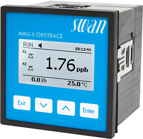 An electronic transmitter for continuous measurement of trace concentrations of dissolved oxygen in power and industrial plant water cycles and ultrapure water for semiconductor fabrication.